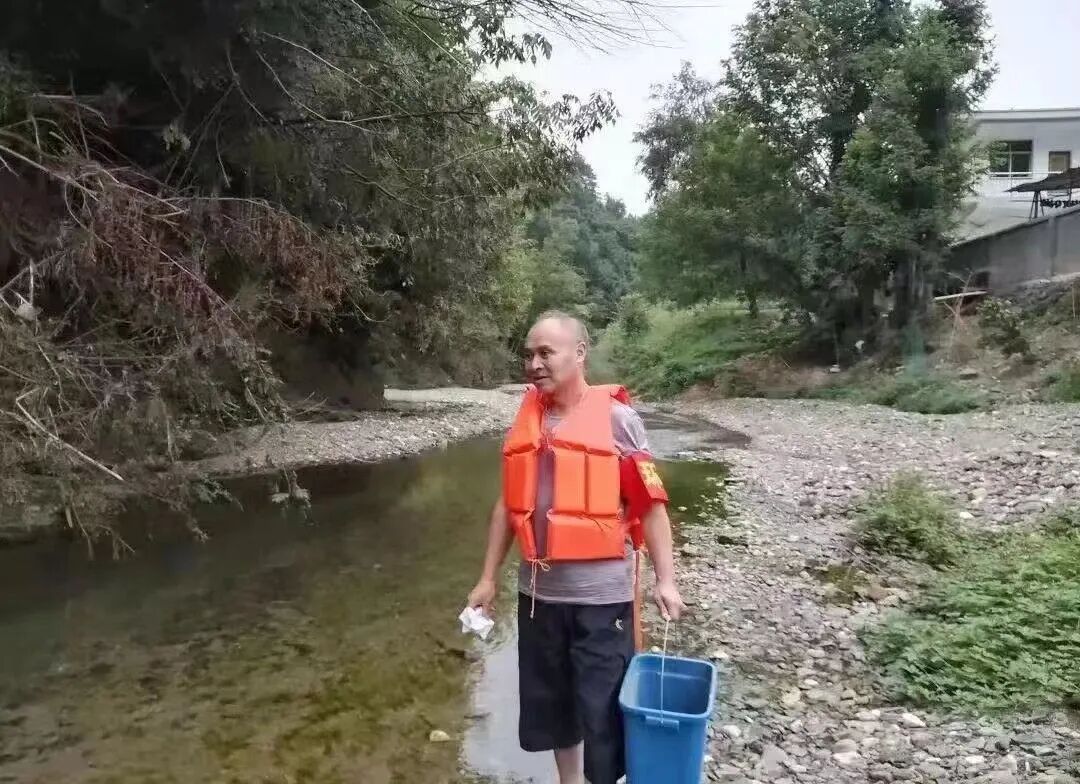 7月29日清晨,在陕西省汉中市宁强县汉源街道汉水源村,村民王开强背着自制的简易工具包,沿着河道开始了十多年如一日的义务巡河。
