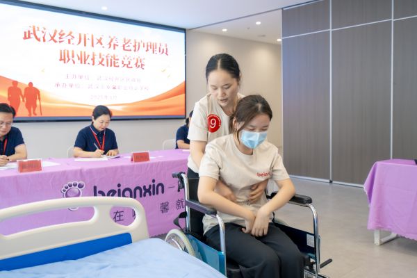 本次竞赛由武汉经开区民政局主办,贝安馨职业培训学校承办,分为赛前培训和技能竞赛两部分。其中,赛前培训由区民政局委托专业培训学校分别到5个养老机构和相关街道,为武汉经开区从事养老服务行业的养老顾问、护理员、助老员等近200余名养老从业人员开展为期3天的培训,技能竞赛分为理论笔试与实操竞赛两大环节。