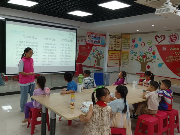 活动伊始,志愿者们从习惯的定义入手,带领孩子们开启好习惯认知之旅。在“正衣冠”环节,志愿者们通过“领子翻翻好,扣子对对牢,袜子穿穿正,鞋带系系紧”的儿歌,带领孩子们互相检查衣冠,评选“整洁小标兵”;“知礼仪”环节通过“借文具”“排队打饭”情景剧的形式,生动展示了校园文明礼仪规范;“讲卫生”环节中,志愿者用趣味实验让孩子们直观看到洗手的重要性;故事《狼来了》告诉我们重诚信的原因。