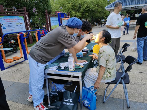 同时,针对夏季蚊媒传染病高发态势,社区工作人员在影片放映前,向居民详细科普防控知识。活动现场还设有爱尚大众口腔公益服务台,为居民提供免费口腔检查与健康咨询,将贴心服务送至身边。