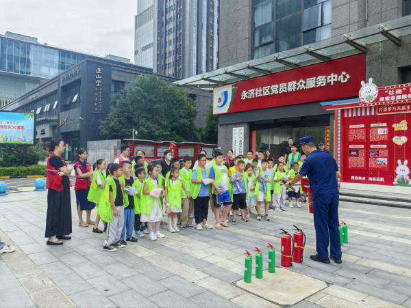 车谷融媒8月12日讯 近日,沌口街道永济社区联合辖区消防救援站开展了一场逃生与灭火应急演练。托管班45余名儿童及工作人员参与其中,通过实战模拟掌握安全技能。