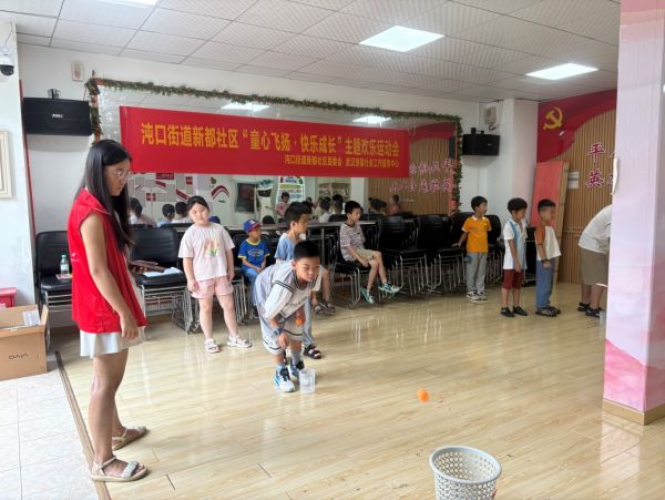 车谷融媒8月14日讯“加油!加油!再投一个!”“哈哈哈哈,你动了!”在沌口街道新都社区创业路片区党群服务驿站,一阵阵欢快的笑声此起彼伏。8月13日,由新都社区新时代文明实践站暑期公益托管班精心打造的“童心飞扬 快乐成长”欢乐运动会火热开场,30名小朋友在趣味运动中挥洒汗水,收获成长,为这个暑假留下不一样的精彩记忆。