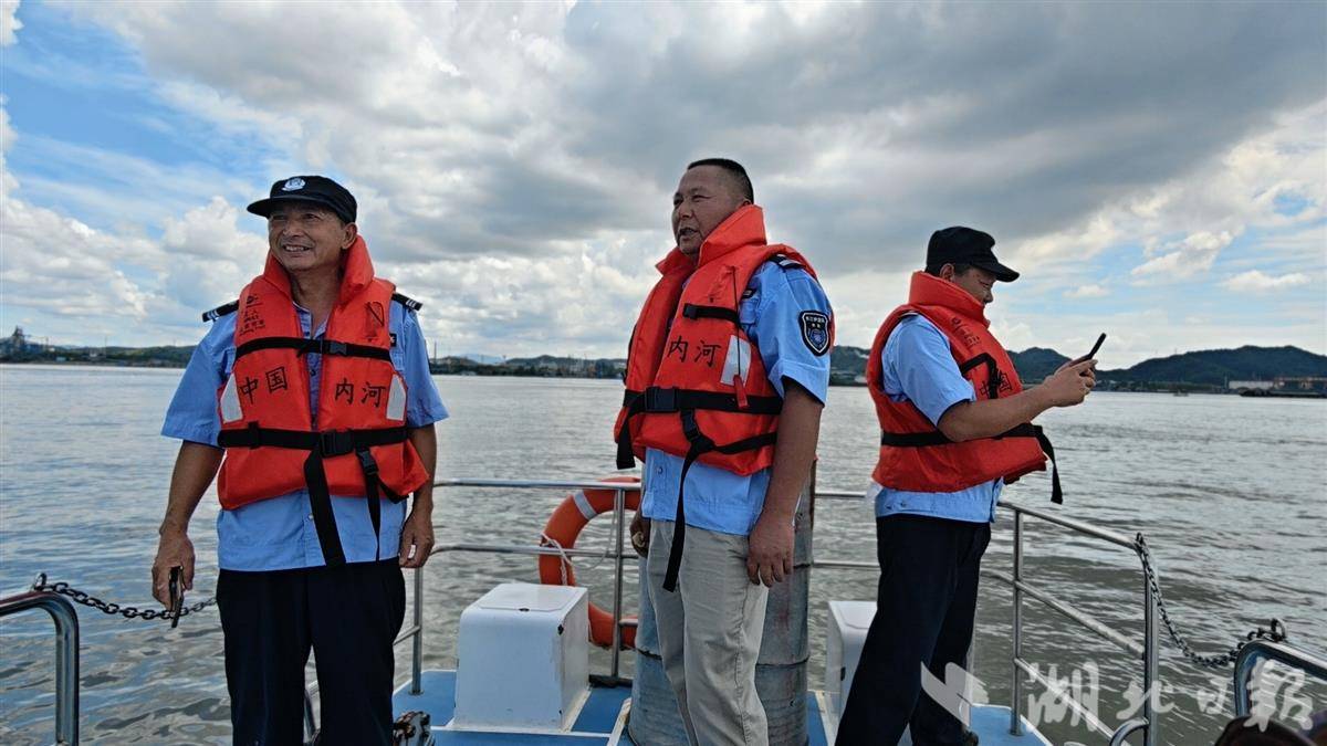 记者登上一艘渔政巡逻艇,60岁的邓泽林开船——他是九江市柴桑区农业农村局渔业渔政股护渔队队长,每天早上5点便开始沿江巡查,严管非法捕捞、违规垂钓等行为,保护江豚生存环境。