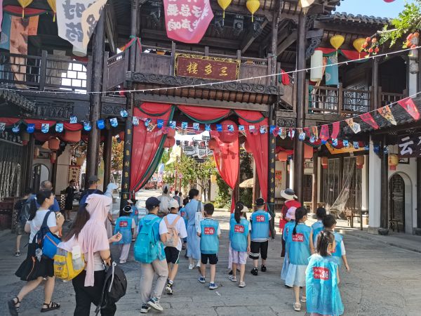 抵达祥云湾,古建群的飞檐斗拱、青砖黛瓦瞬间映入众人眼帘,吸引了所有人的目光。在社工的引导下,亲子家庭穿梭于古朴的建筑之间,用心触摸着岁月的痕迹。