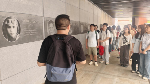 在武汉保卫战纪念墙前,会计学院学生工作办公室主任、分团委书记刘桢老师为学生们上了一堂生动的历史课。他详细讲解了武汉会战的历史背景、作战过程和历史意义,通过丰富的史料和翔实的数据,再现了那段烽火岁月。