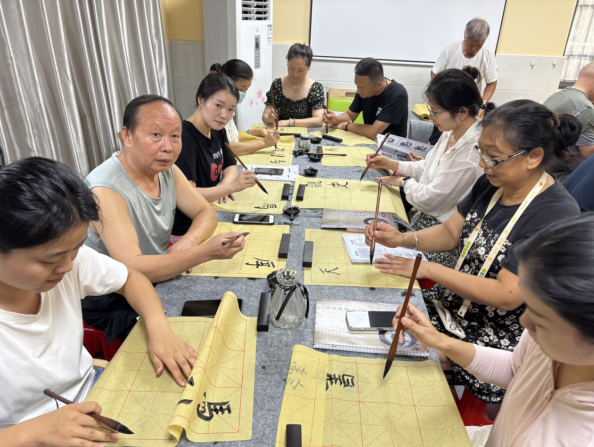 车谷融媒9月9日讯 近日,沌阳街道官士墩社区公益成人书法班正式开班。在党员志愿者李涛的指导下,居民们聚精会神地提笔挥毫,感受书法艺术的魅力,开启墨香之旅。