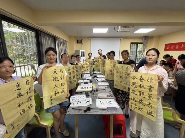 社区党委了解到党员们的自发行动后,第一时间给予了全方位支持,不仅提供了宽敞明亮的场地,还配备了专业的书法教学用具。