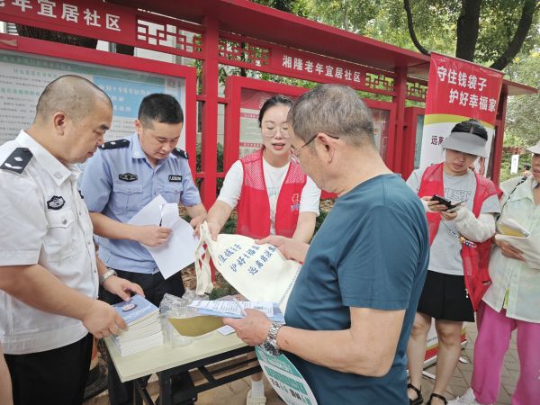 车谷融媒9月11日讯 9月10日上午,沌口街道湘隆社区联合神龙派出所在辖区小广场开展“守住钱袋子 护好幸福家”主题宣传活动,将金融安全知识送到居民身边。