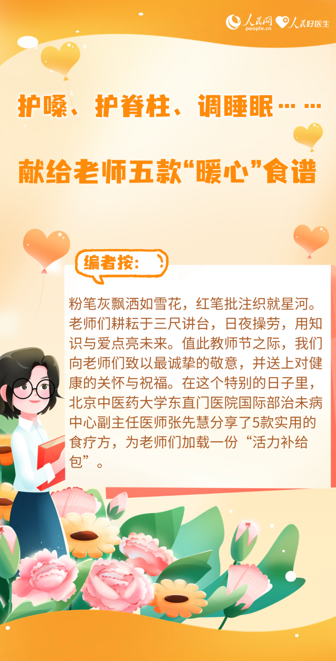 护嗓、护脊柱、调睡眠……献给老师五款“暖心”食谱