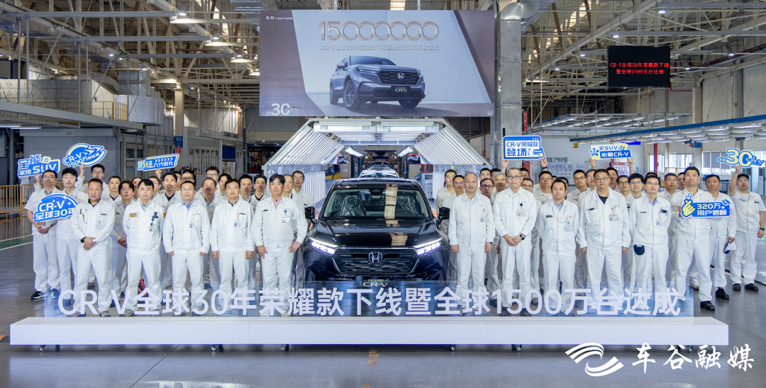 车谷融媒9月16日讯 9月15日11时40许,在位于武汉经开区的东风本田第三工厂总装车间,一辆东风本田CR-V全球30年荣耀款缓缓驶下生产线。同日,CR-V全球累计销量突破1500万台,成为全球最受欢迎的家用SUV之一。