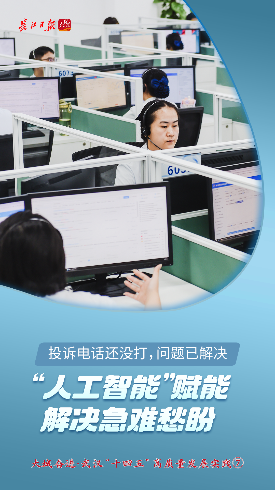 “不是我多聪明,是我们的智能系统能实时‘喂料’,答案又快又准。”接线员何鑫说,要是以前,需要边接电话边翻政策,响应慢,还易出错。