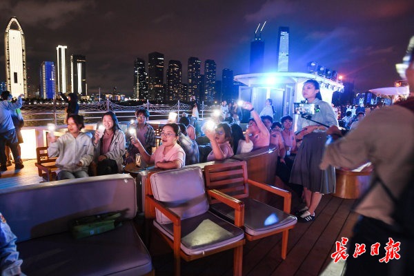 直播中,国家金牌导游王家昕讲江城历史,带着网友逛江景、看演出。在他看来,如今的长江夜游早已突破单一的观景功能,通过“文旅+演艺+美食”的深度融合,打造出多层次消费场景。从8月底,“古琴号”增设了每晚两轮《袖卷云筝》表演、魔术奇幻之旅、脱口秀欢乐派对,还上新自助套餐,让游客从“看江景”升级为全方位的“游赏宴”。