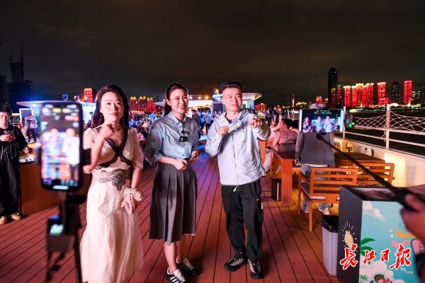 当晚,“知音湖北・超级文旅日”首场“秋爽武汉·17游长江”——“超级尝鲜”活动同期启动,众多网络大V、文旅达人、市民游客作为超级文旅体验官,“17(一起)”尝鲜武汉沉浸式新场景,玩转“超级文旅日”。“江风拂面,灯光映水,这种沉浸式体验是在陆地上无法比拟的。”来自洪山的武先生一家以前经常在江滩游玩,这次作为超级文旅体验官首次登上“古琴号”,感受到新潮、浪漫的新体验。