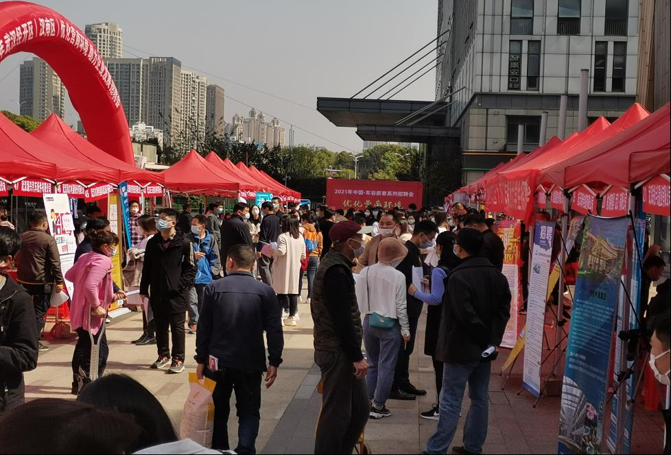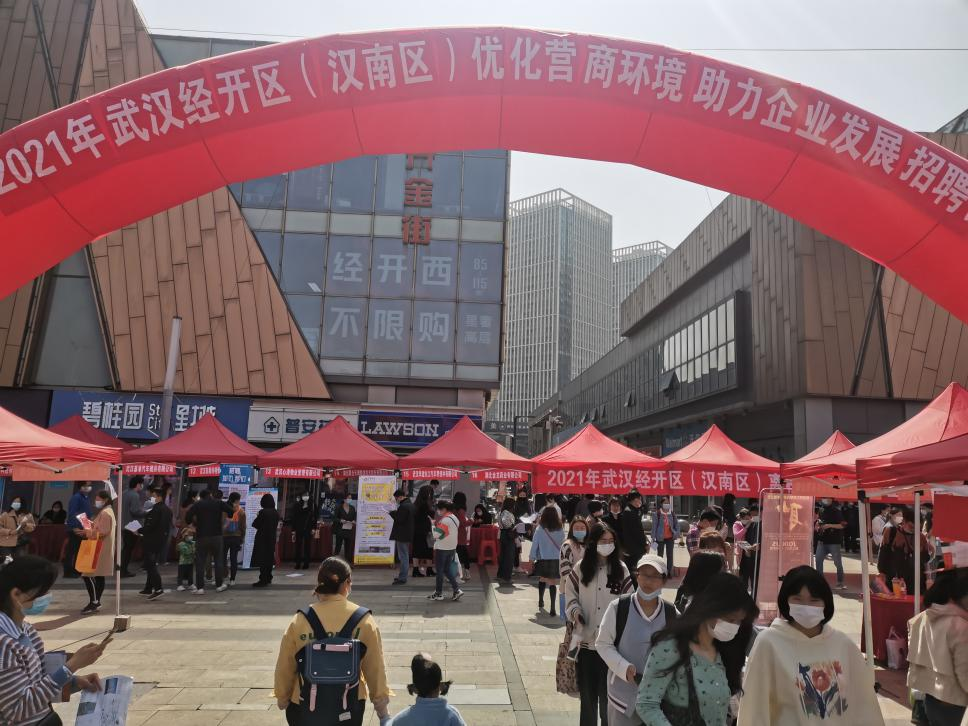 3月28日上午,武汉经开区举办的“优化营商环境 助力企业发展”专场招聘活动在万达广场顺利举行,59家用人单位和近千名求职者参加了本次招聘会,经过现场交流洽谈,达成就业意向180余人。