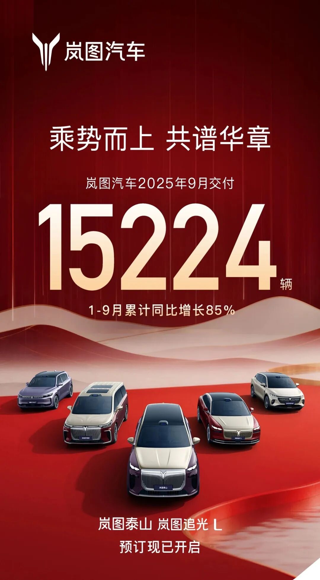 “9月,岚图以产品、品牌与技术的三重突破,进一步释放出强劲的发展潜能,实现了交付量的历史性跨越。”岚图汽车董事长、总经理卢放表示,岚图将全力以赴加快生产交付节奏,持续优化用户全生命周期服务体验,推动品牌实现更高质量、更可持续的发展跨越。据了解,为满足不断增多的订单需求,岚图汽车9月产能再提速,岚图汽车黄金工厂与云峰工厂火力全开、提速生产,单日产能达800辆,创历史新高。