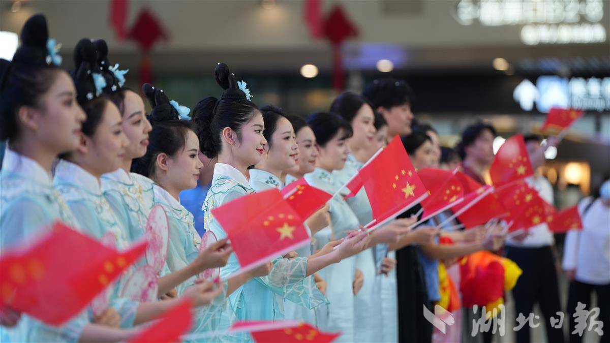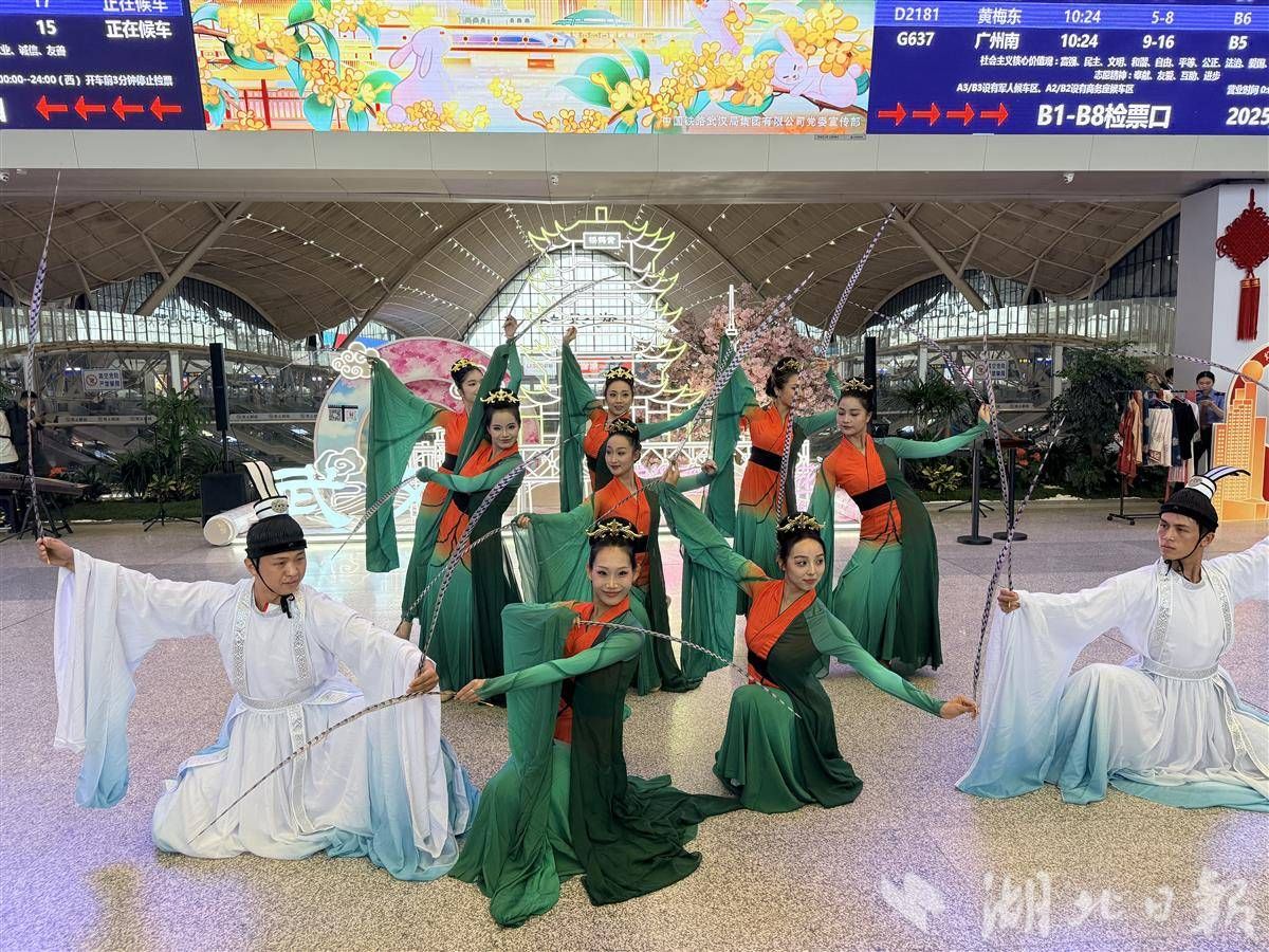 9月30日,武汉火车站为旅客准备了丰富的文艺节目。通讯员 覃凯 摄