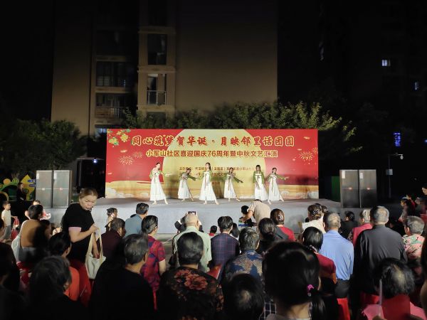 车谷融媒10月3日讯 变脸演员与孩子击掌,糖人摊前排起长龙……9月26日晚,军山街道小军山社区举办“喜迎国庆76周年暨中秋文艺汇演”主题活动。