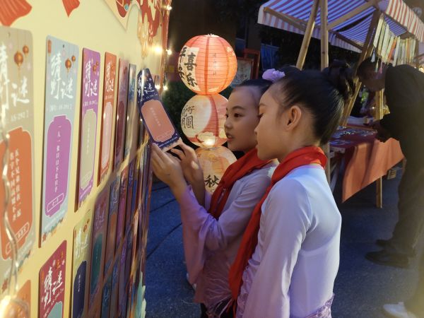 现场,党员志愿者已全面投入服务,穿梭于DIY书签区、猜灯谜互动区等摊位前,提供贴心服务。