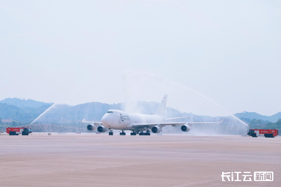 花湖机场开通第100条货运航线过水门仪式