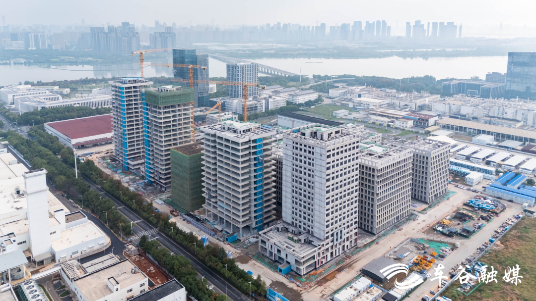 10月4日,武汉经开区数字经济产业园项目建设现场,记者看到一栋栋建筑拔地而起,超千名建设者坚守一线,正在紧张有序地作业,一片繁忙施工景象。