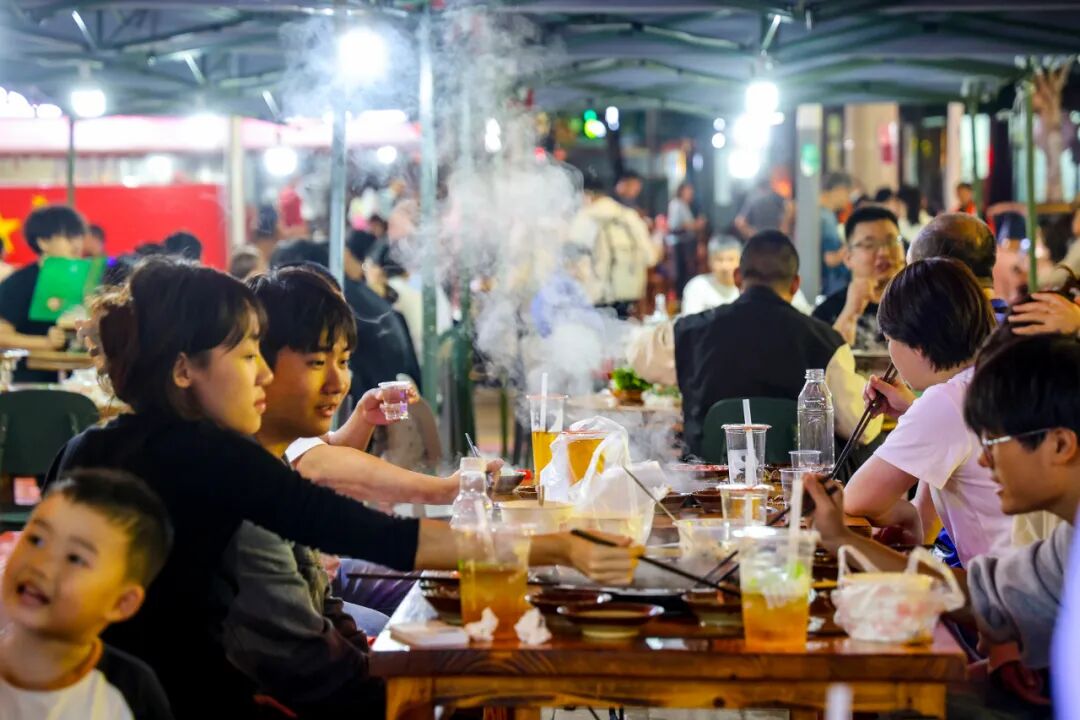 从9月30日到10月7日,剧场每晚7点准时开演,1小时的演出包含20个左右节目,场场爆满。起初团队还担心吸引力不足,可首晚6点半,五一路便涌入大量市民游客,边逛美食摊边等演出,街巷里摩肩接踵,烟火气与舞台光交织成画。