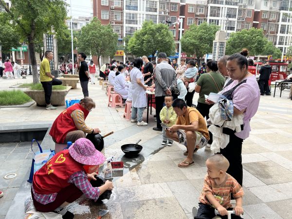 三场便民活动分别在凤凰湾、庭瑞、楚世家小区有序落地。活动现场,居民们在义诊、义剪、磨刀、配钥匙、缝补、洗锅底等多个摊位有序排队。