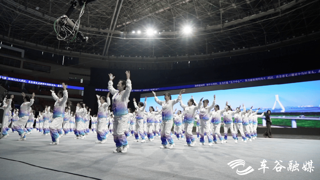 车谷融媒10月23日讯 10月25日,武汉市第十二届运动会将在武汉经开区开幕。10月23日,记者走进武汉体育中心体育馆,来自武汉经开区学校、社区的群众演员精神饱满,正紧锣密鼓地进行暖场节目排练。
