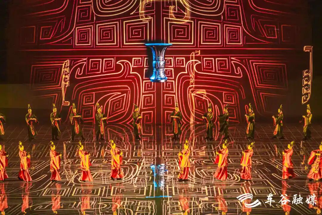 在序篇《江汉长歌》中,武汉最早原住民、汉阳人“九凤”离开洞穴,从远古的薄雾中走来;当LED屏切换为青铜器纹路,巨型“天兽御”铭文注满古老的图腾;设法山上,诸葛孔明轻摇羽扇、登坛做法,大军山下,诸葛孔明锻炼士卒,准备在赤壁鏖战曹操。场景切换中,仿佛穿越了千年,历史的沧桑巨变都交融在浩浩汤汤的长江之水,汇成一首“江汉长歌”。