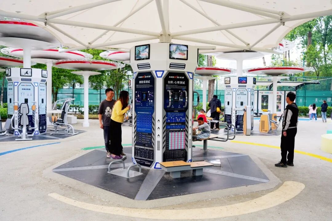围绕这一战略,昊康已构建起全民健身器材、体育公园、文旅设施、体育场馆和健身数据云平台五大业务板块,创新推出“数智”健身器材、智慧健身步道等产品,着力构建智能化健身场景。