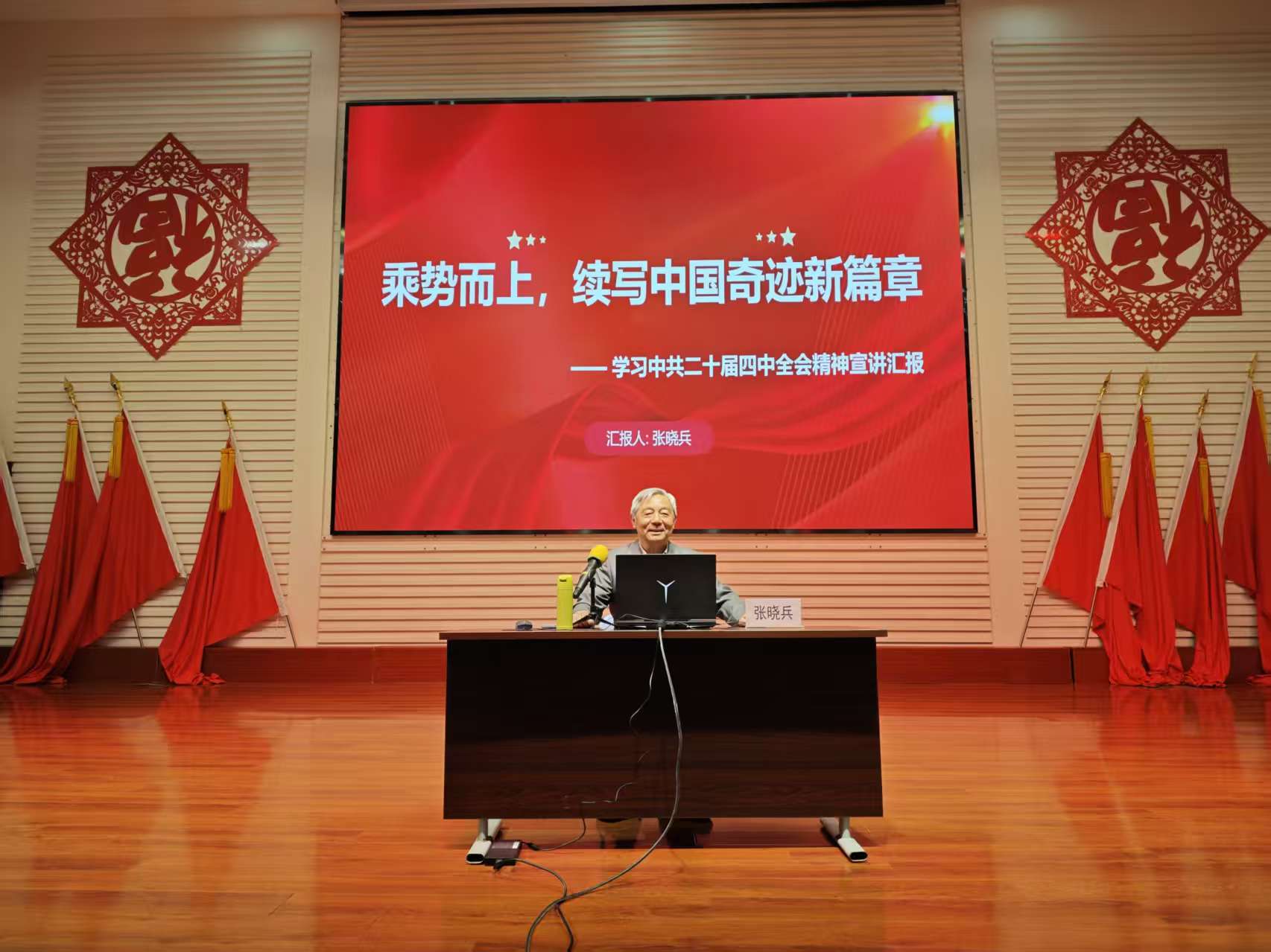 车谷融媒11月14日讯 11月13日,沌阳街道全力北职工社区联合格力电器(武汉)有限公司开展“同上党课”专题活动。邀请武汉市“五老”张晓兵作《乘势而上,续写中国奇迹新篇章——学习中共二十届四中全会精神宣讲汇报》主题宣讲,深入学习贯彻党的二十届四中全会精神,推动理论学习与企业发展深度融合。