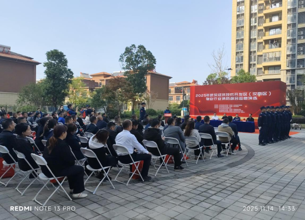 车谷融媒11月14日讯 11月14日,武汉经开区住房和城市更新局(以下简称“区住更局”)在汉南碧桂园凤凰湾举办物业行业消防综合应急演练,提升物业行业应急处置实战能力以及消防安全治理水平。本次演练秉持“贴近实战、以练促防”原则,凝聚政企社多方合力,筑牢消防安全屏障,为辖区群众生命财产安全织密“防护网”。
