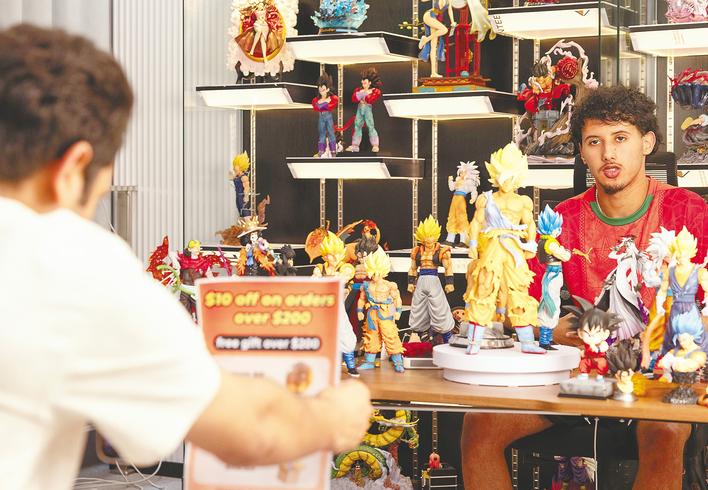 鄂州跨境电商产业园,来自巴基斯坦、摩洛哥的主播们在向美国粉丝推介Cosplay手办。(湖北日报全媒记者 薛婷 摄)
