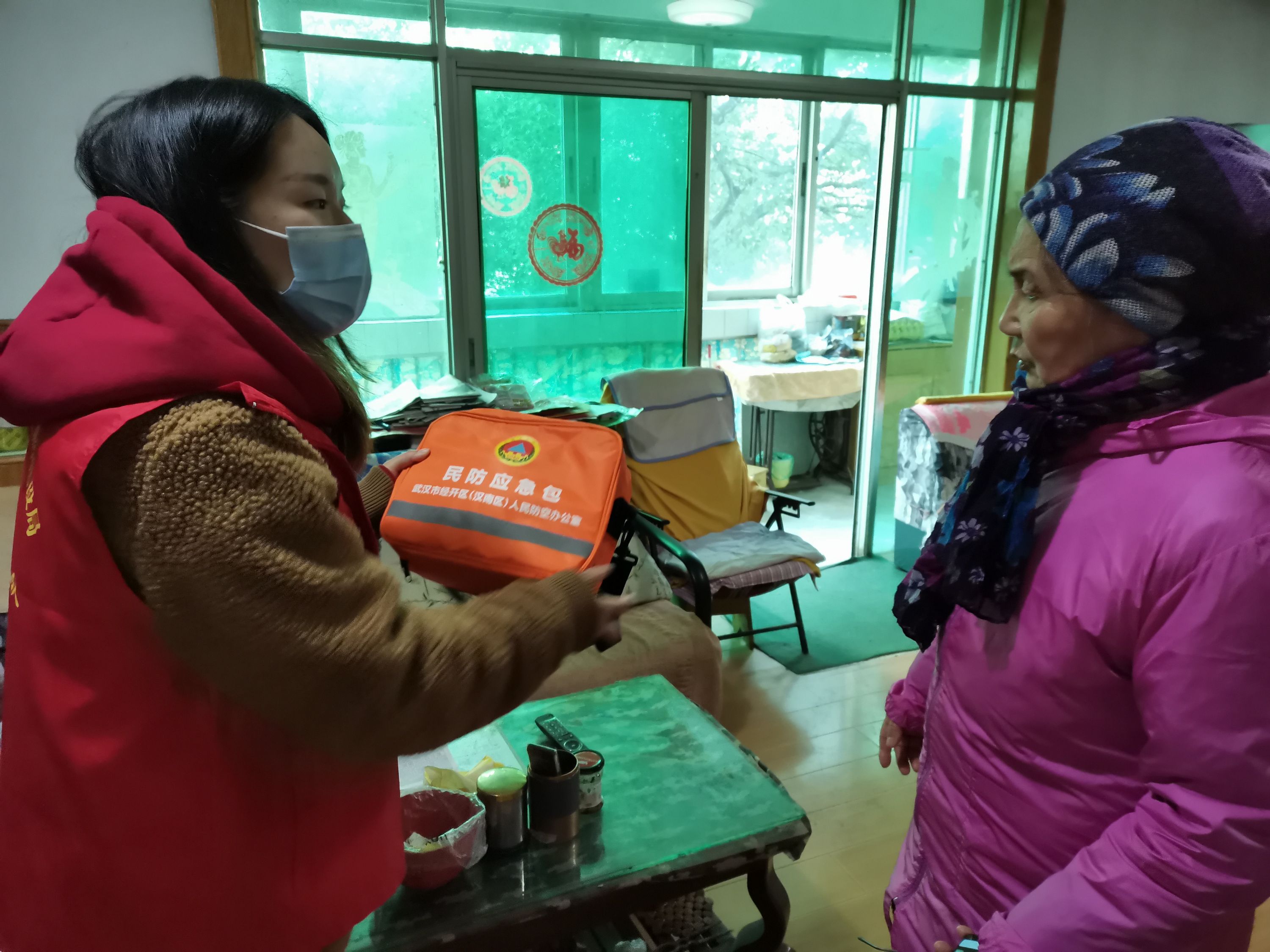“阿姨,这是我们的民防应急包,里面有介绍家用电器安全使用、电气线路等消防安全常识。”社区消防安全员上门为独居老人讲解防火知识,并发放消防安全宣传手册和家庭防火常识,再三叮嘱居民出门关闭燃气阀门、断电,不要在家里或者楼道里堆放废旧纸箱,将温暖和平安传递到每一位居民心里。