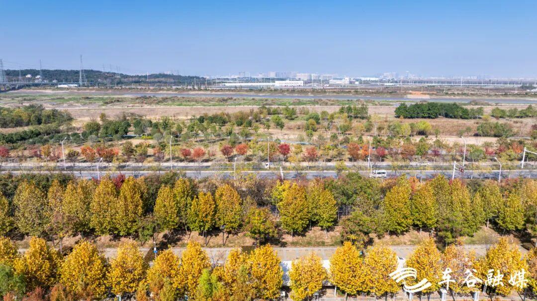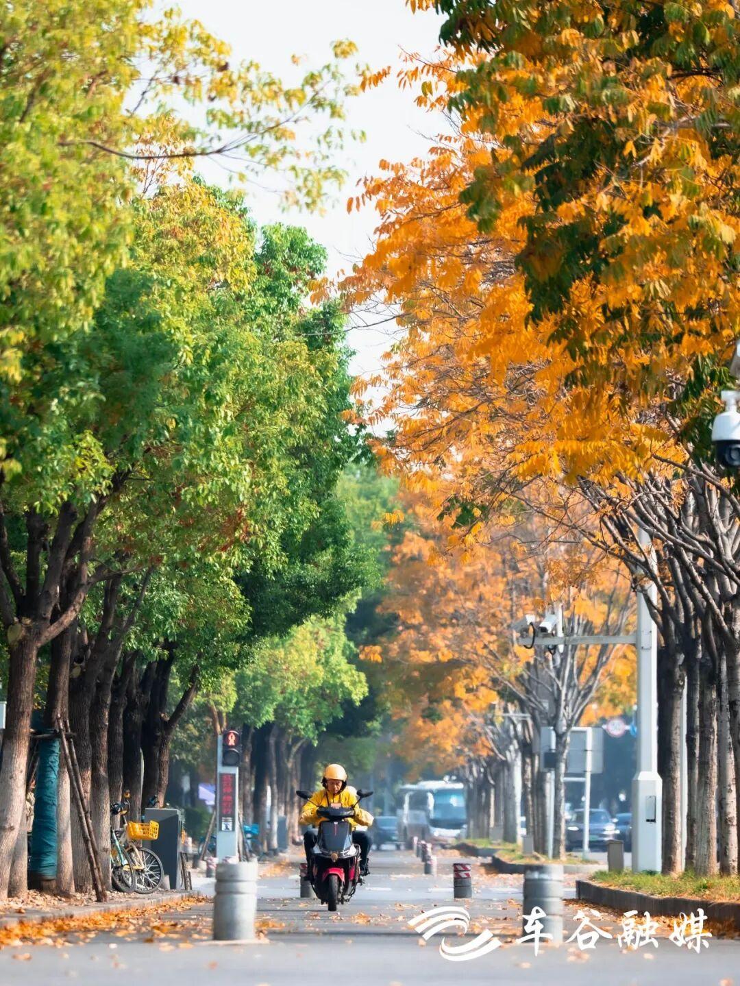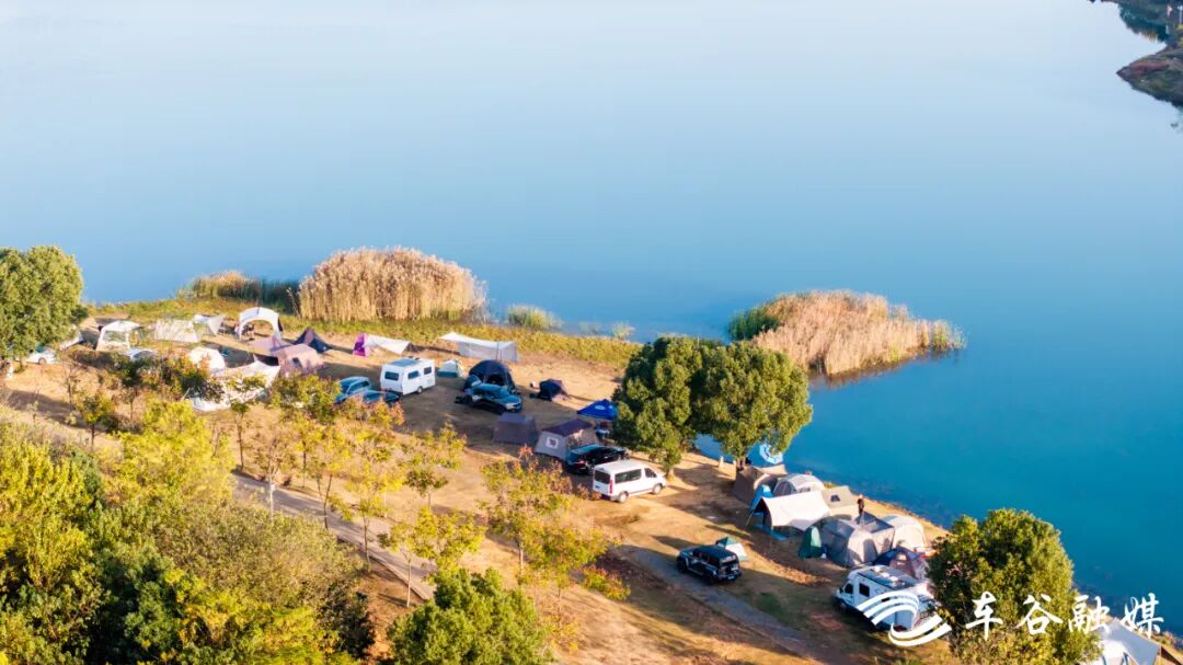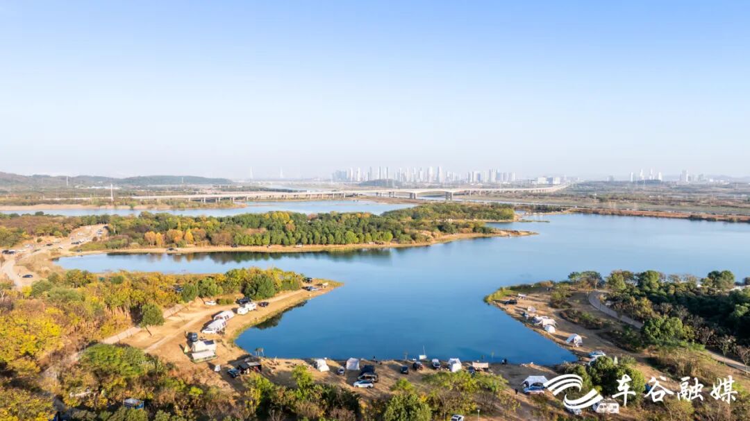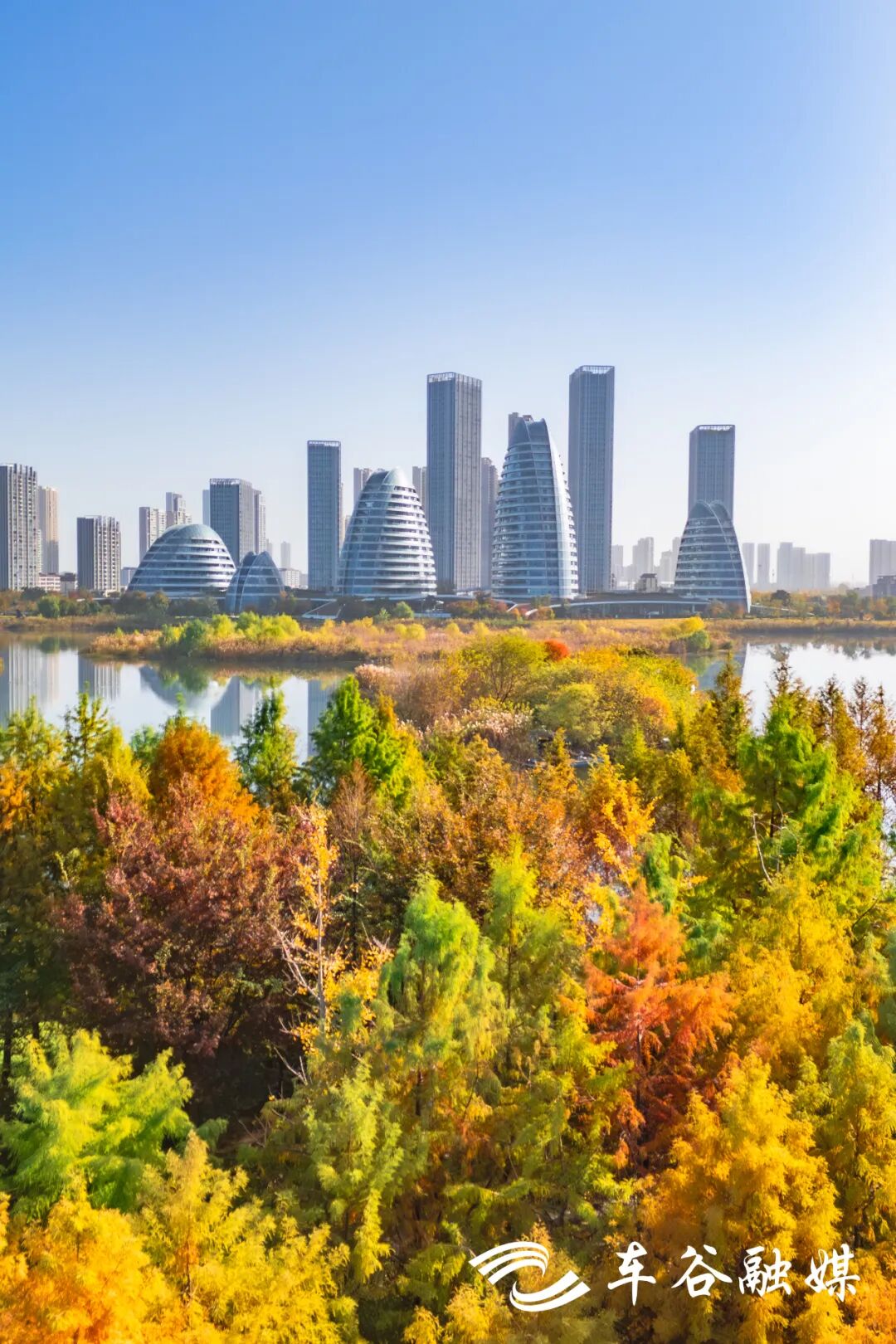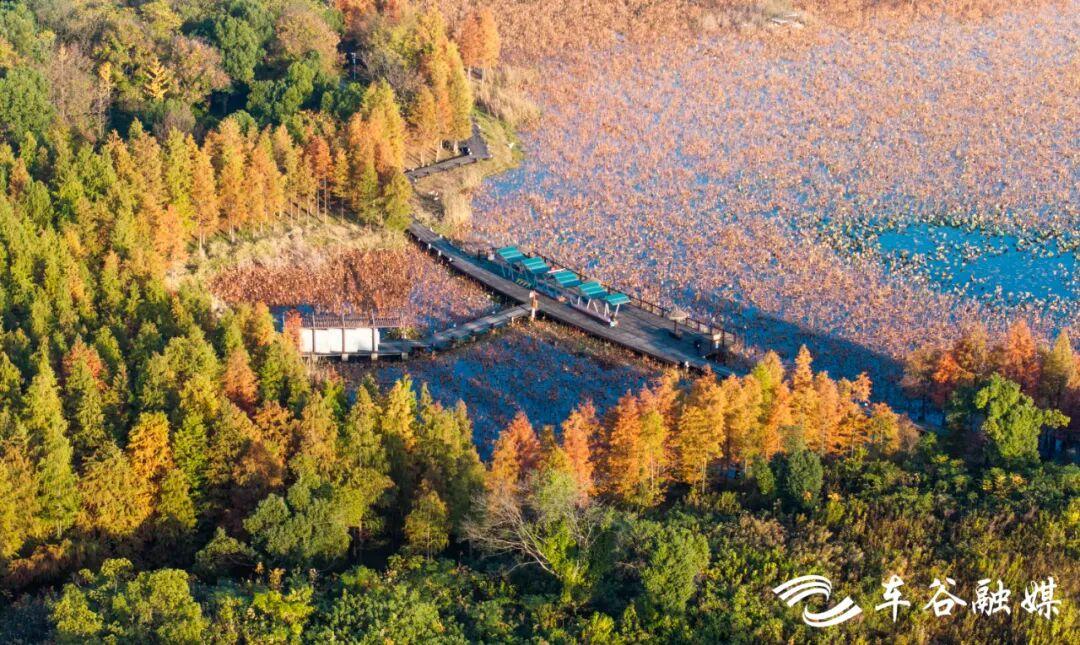 蓝色湖心逐渐晕开岸边的“橙黄橘绿”