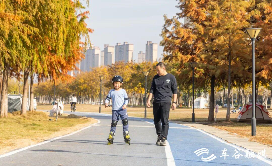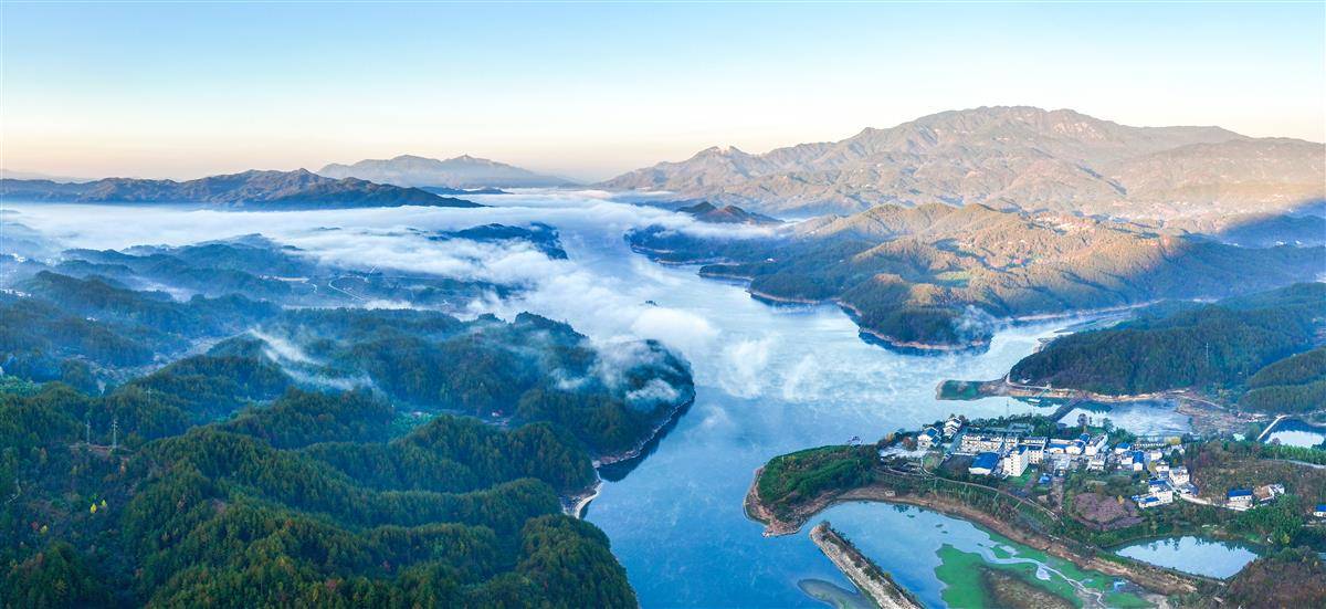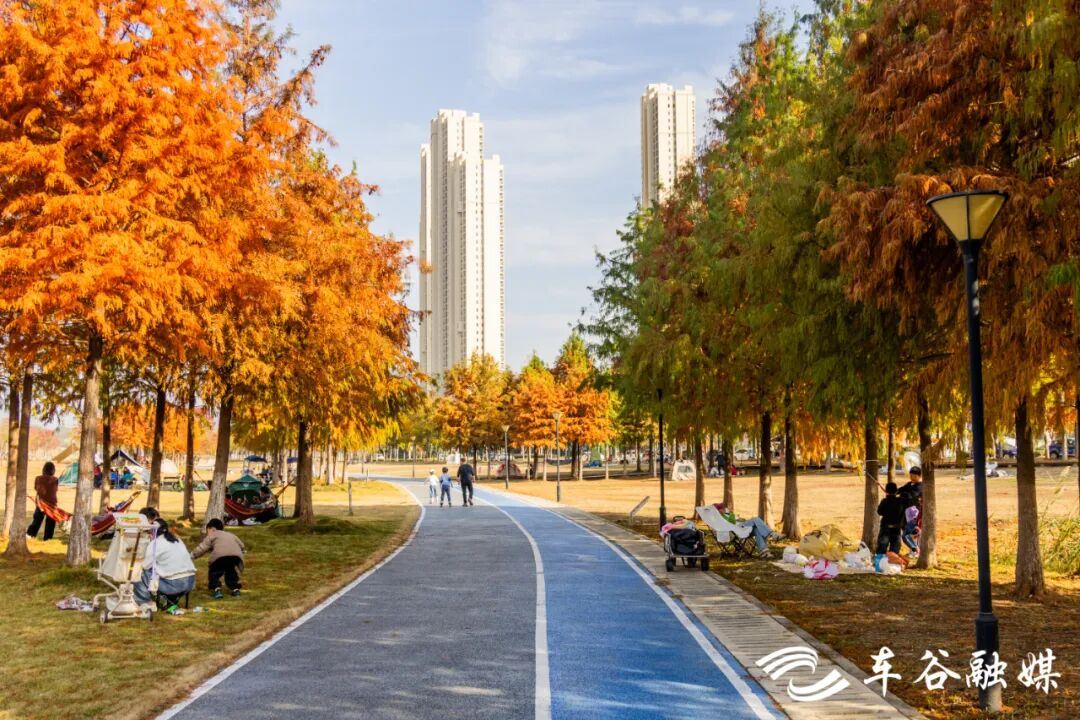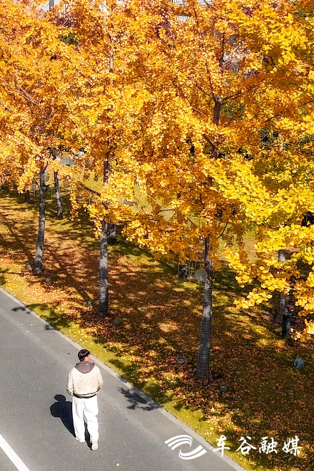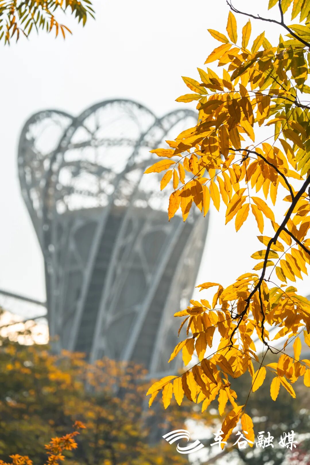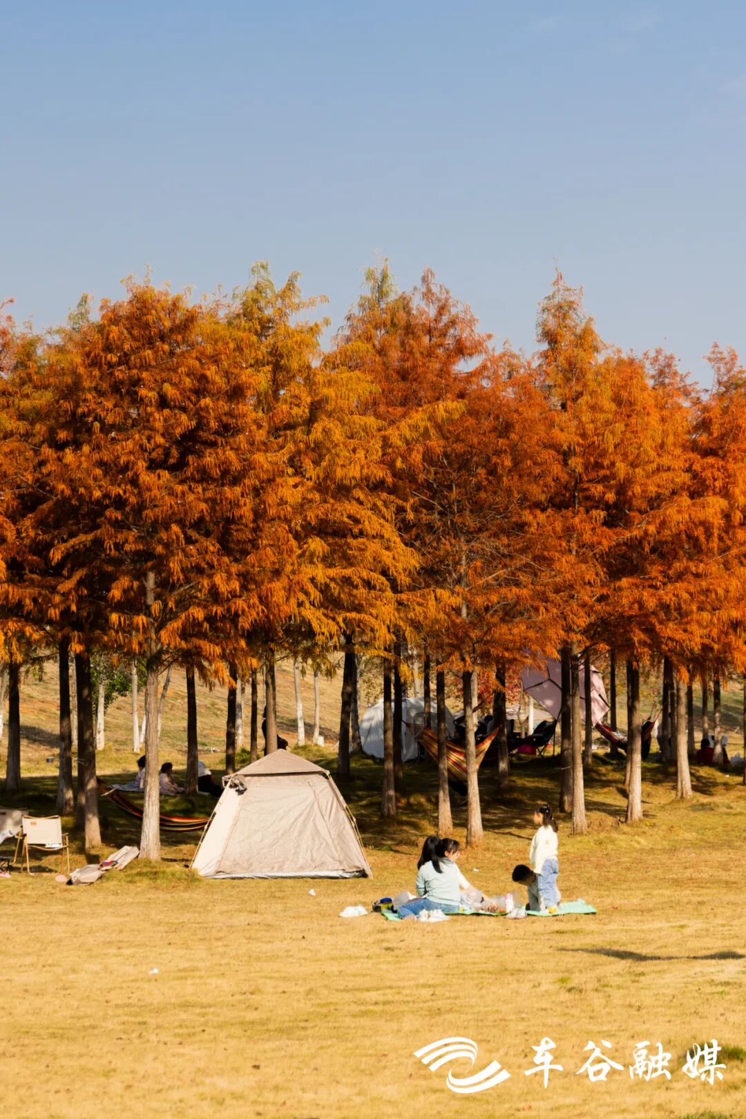 蓝色湖心逐渐晕开岸边的“橙黄橘绿”