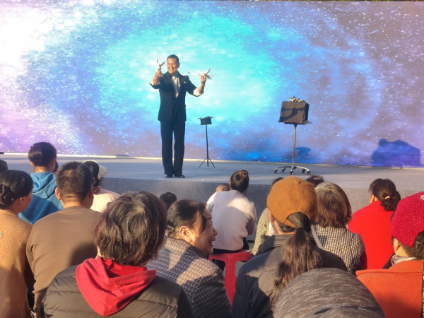 国家级魔术师带来的魔术《梦幻白鸽》惊艳全场,尤其钓鱼竿钓起活鱼的精彩瞬间,引得观众惊呼不断;武术《舞韵》刚劲有力,一招一式尽显中华武术魅力,接连赢得阵阵掌声。整场演出的高潮定格在朗诵+歌曲《烈火英雄+我们的旗帜》,深情朗诵诉说消防员逆行出征的无畏担当,6名消防员身着制服登台合唱,坚毅身影与嘹亮歌声打动全场,台下小男孩全程注视敬礼,动情坦言“他们是最美的逆行者,长大了我也要当消防员”,纯真话语满含对消防英雄的崇敬,让消防精神种子在孩童心中扎根。