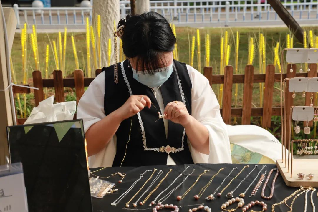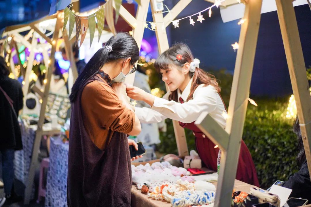 “我是第一次参加这类市集活动,主要是为了体验生活,看到自己亲手做的东西被人喜欢和认可,我觉得特别的开心。”湖北美术学院大二学生林泽笑着说,市集才开市不到一个小时,她已经卖出了不少自己手作的发卡。