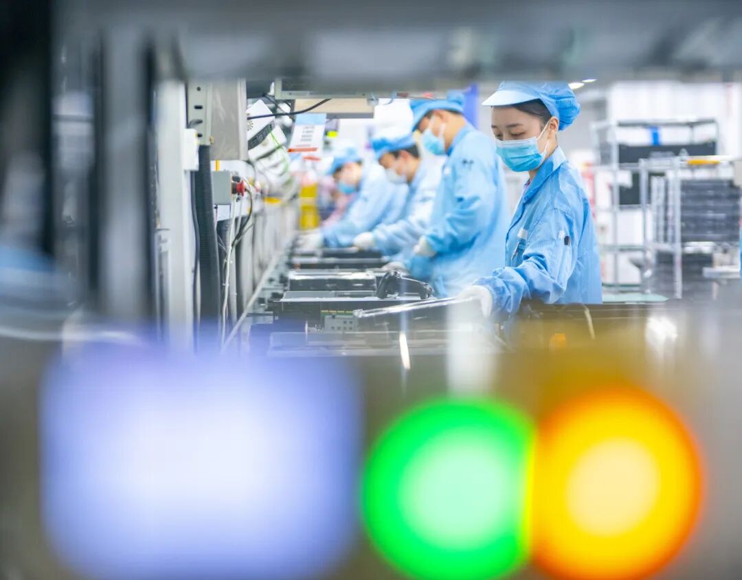 位于光谷的长江计算智能产线,员工和机器人紧密配合生产、检测人工智能服务器(魏铼|摄)