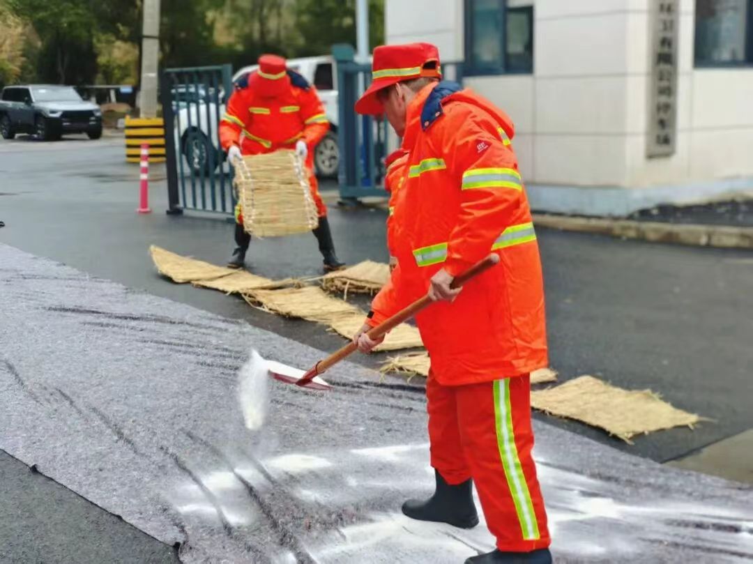 活动现场,四级预警触发后,巡查组对易结冰路段测温监测,环卫单位调度撒布机精准预撒融雪剂;路面湿滑时,雪刷车梯队式清扫积雪,背阴结冰路段同步铺设防滑垫、抛撒融雪盐;遇大雪天气,平地机、雪铲、雪刷车协同联动,实现路面积雪动态清零。沌口街、滨江市政环卫等参演单位密切配合,锤炼协同作战能力,夯实冬季道路畅通实战基础。演练后,与会人员实地检查军山街医工产业园一期项目应急物资设备准备情况,并召开应对工作部署会。会上,区气象局通报天气趋势,区城管局、应急局细化分工压实责任。