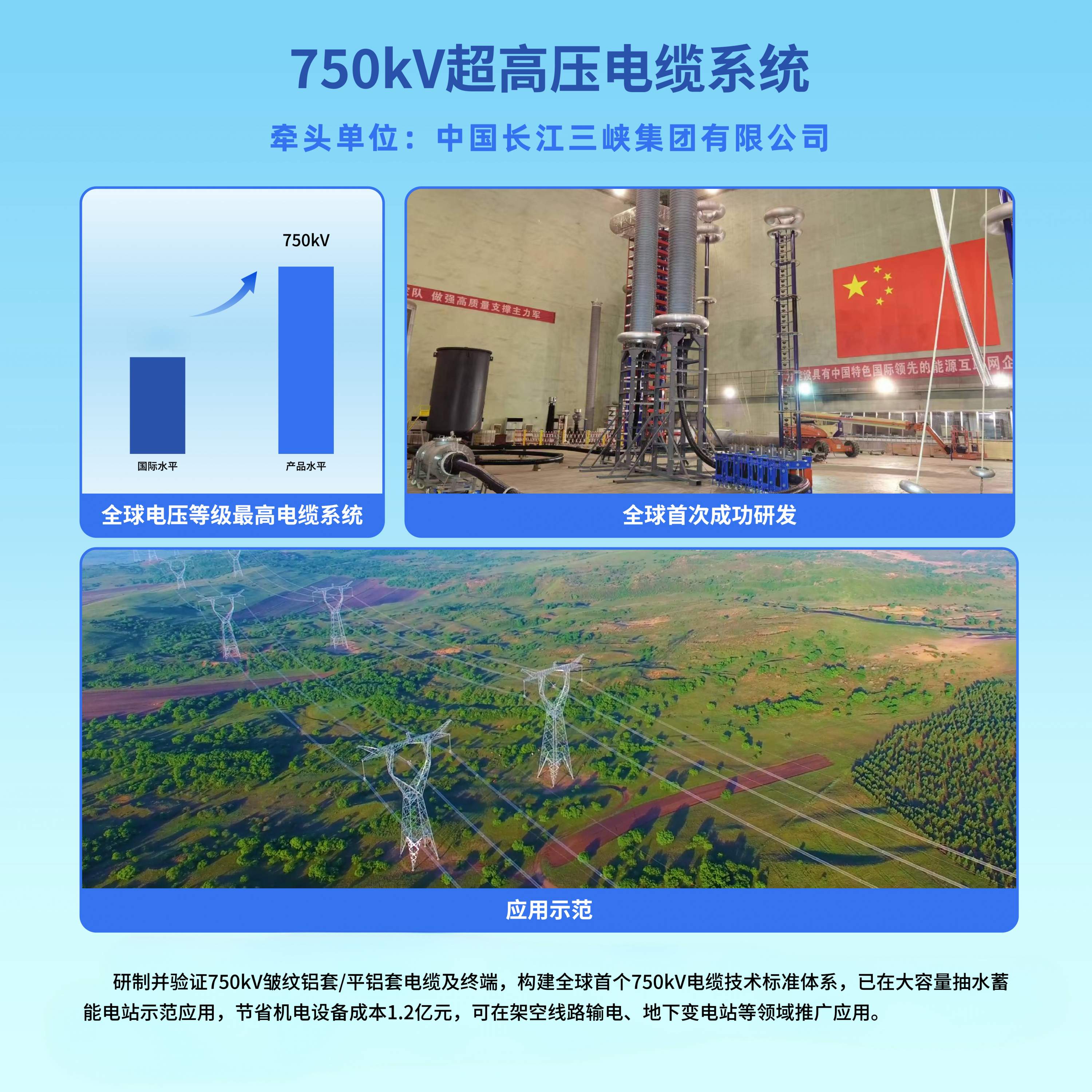 8. 750kV超高压电缆系统:全球首次研制成功并通过试验,填补领域空白。