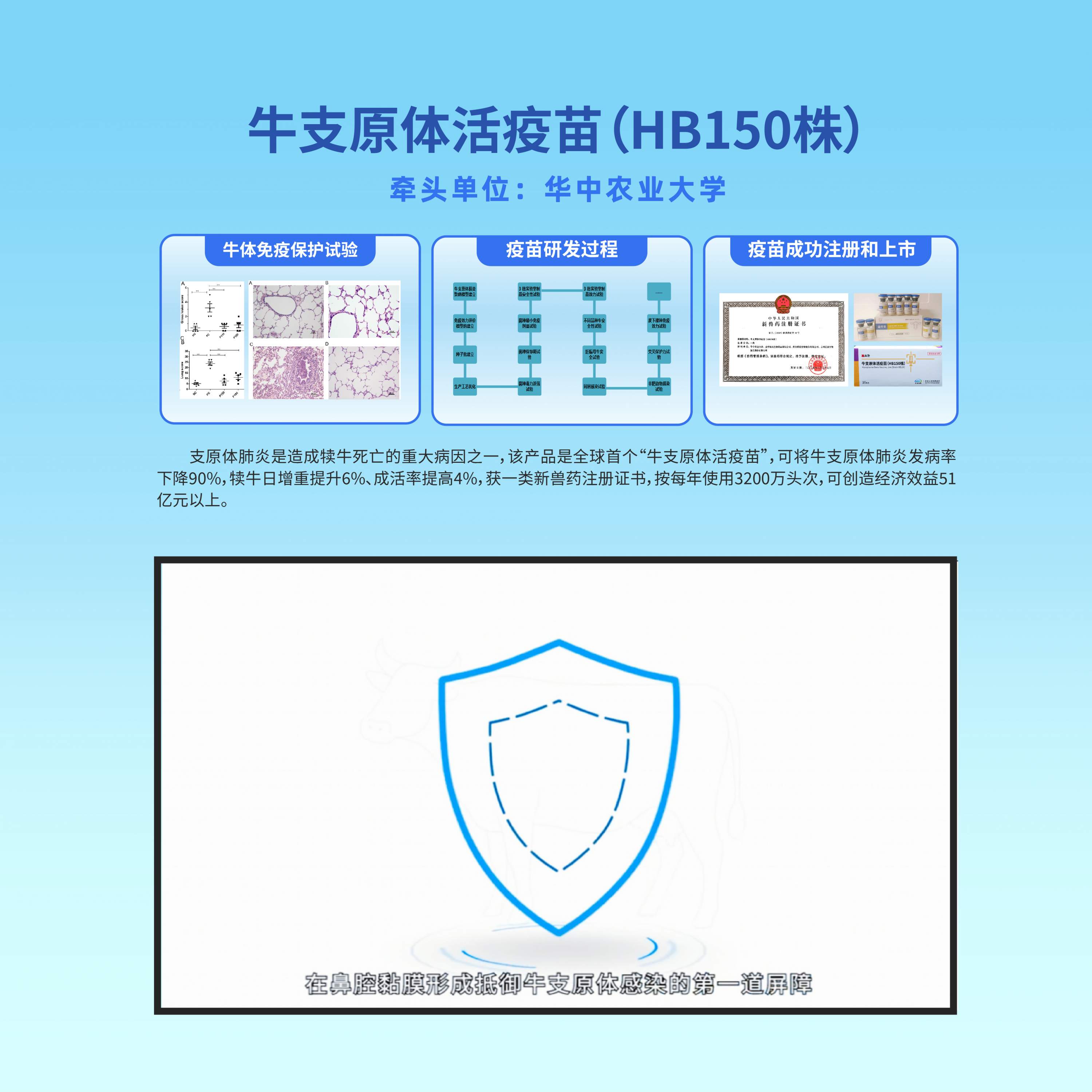 13.牛支原体活疫苗(HB150株):全球首个牛支原体活疫苗,有效防控牛支原体肺炎。