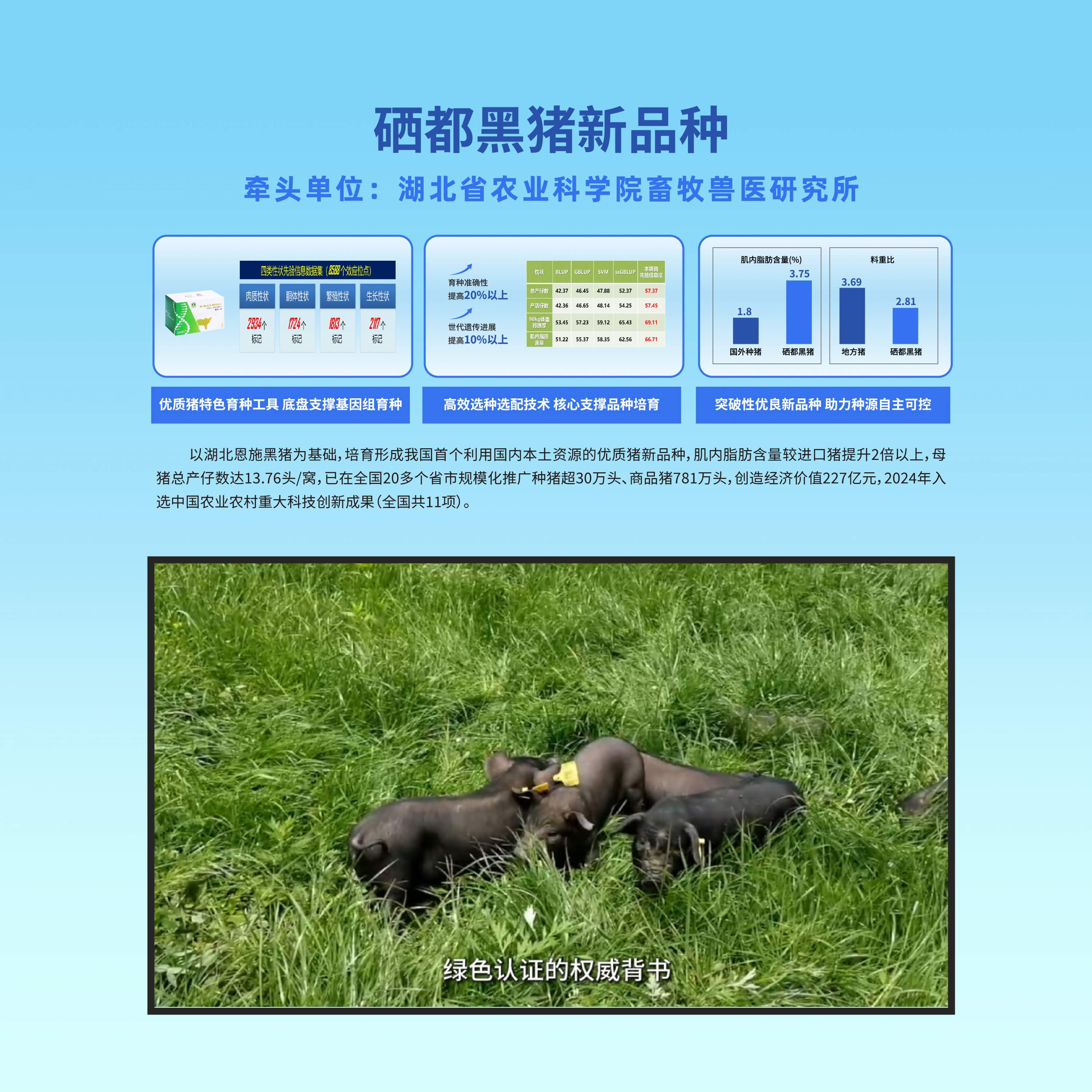 11.硒都黑猪新品种:湖北省首个生猪国审品种,实现优质猪种国产替代。