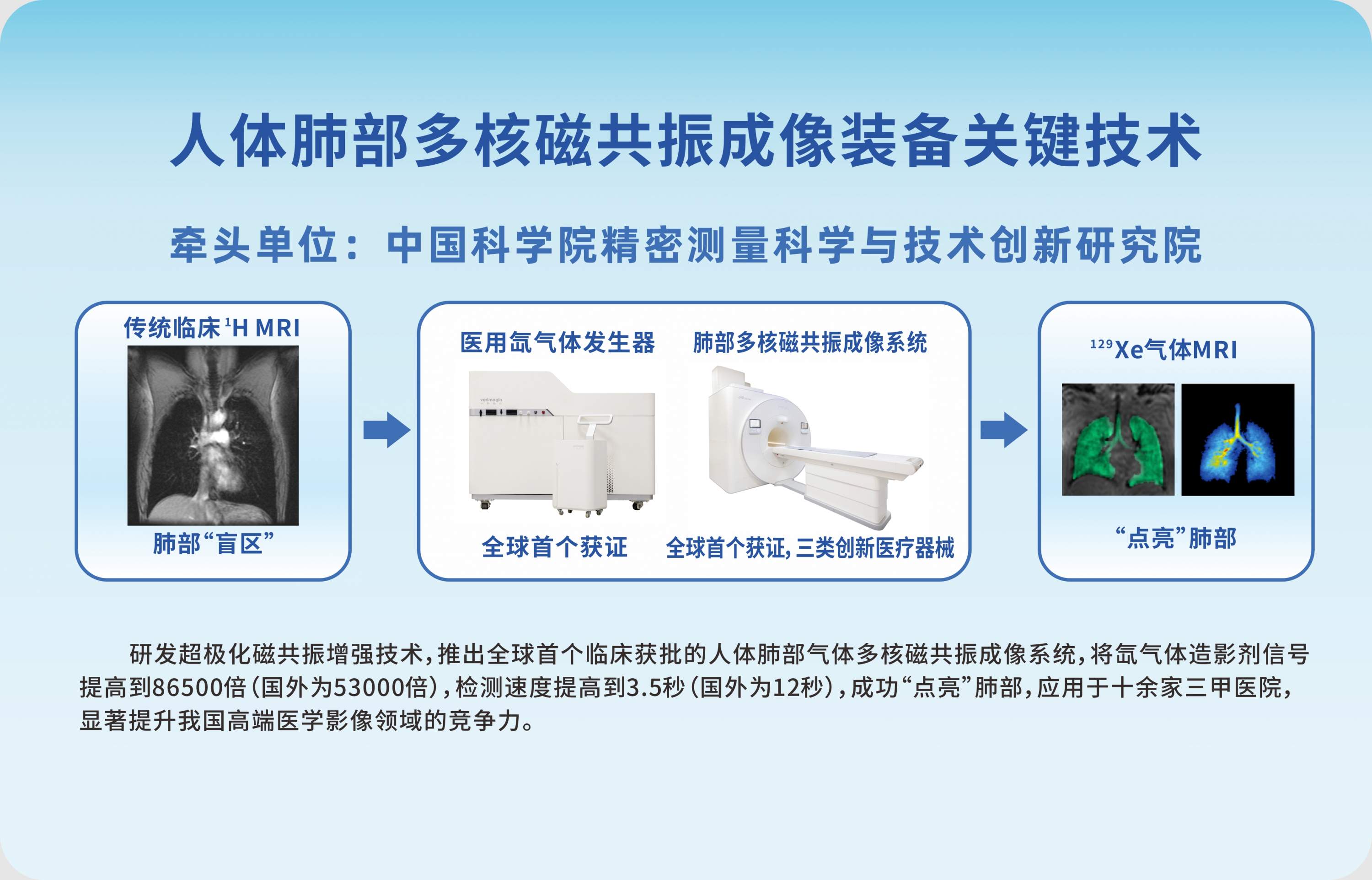 1. 人体肺部多核磁共振成像装备关键技术及装备:获批全球首个同类产品注册证,实现肺部无创精准评估。