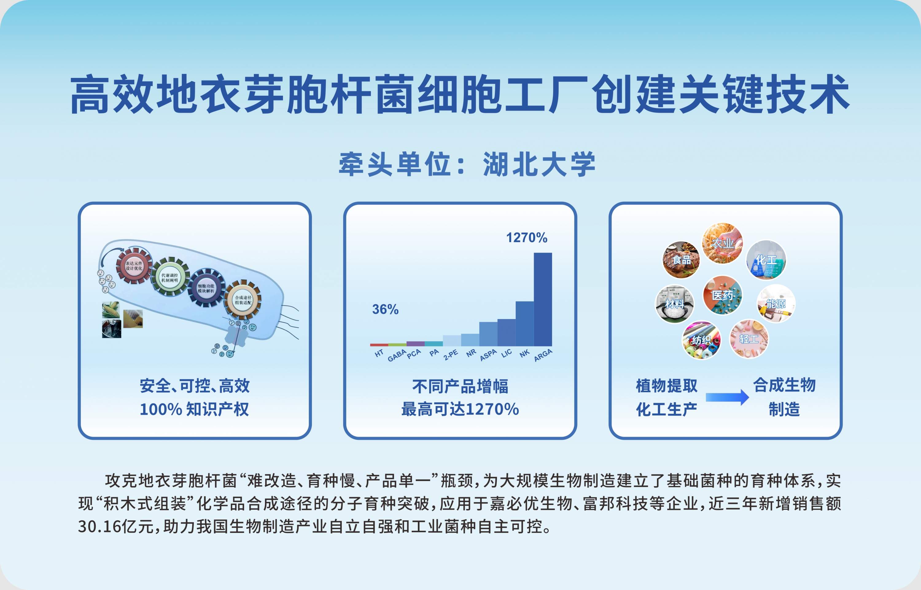 5. 高效地衣芽胞杆菌细胞工厂创建关键技术及应用:攻克工业菌种“卡脖子”难题,创制高性能生产菌株。