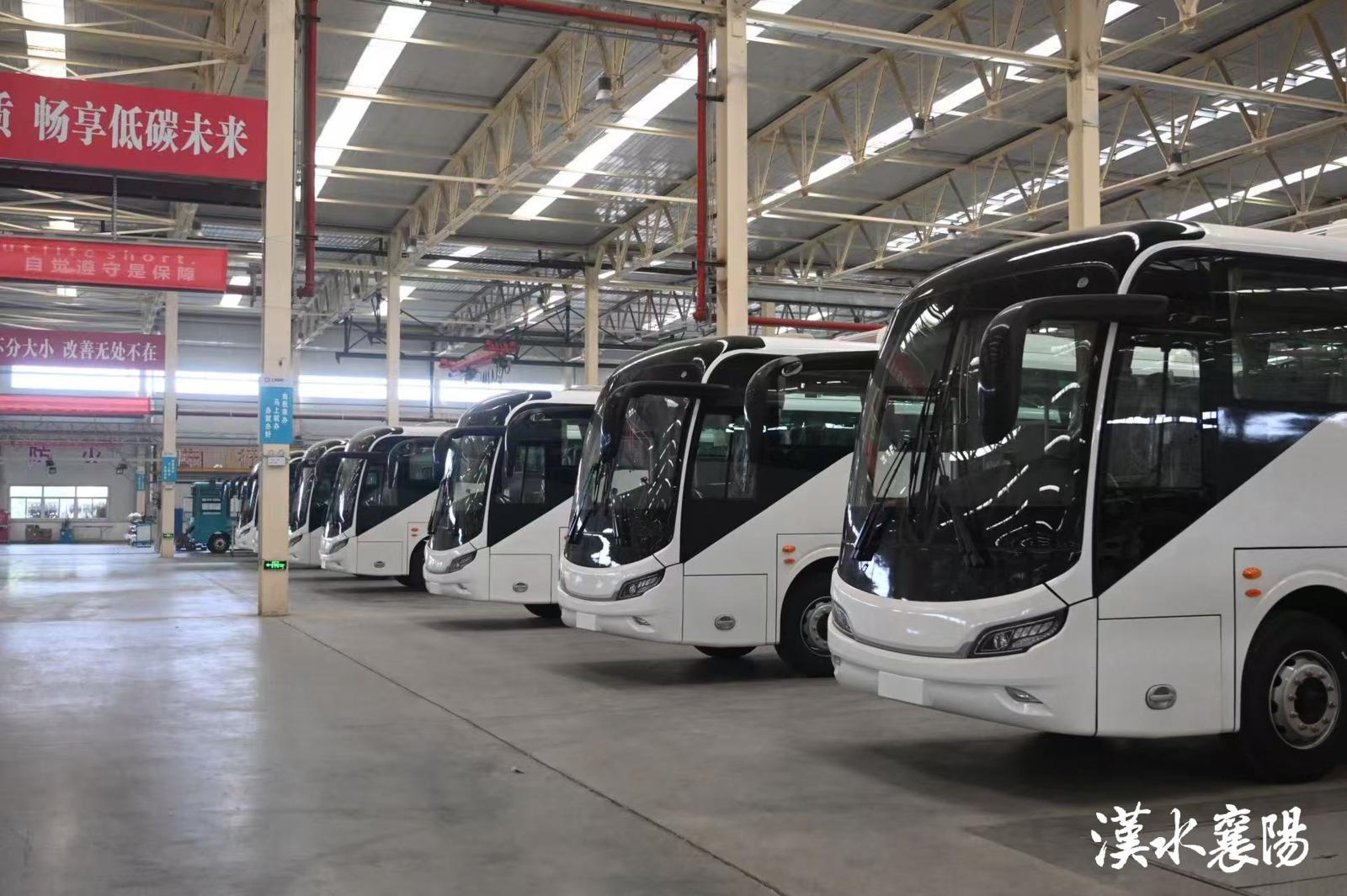 ▲腾龙汽车即将发往海外的12米大巴(资料图)