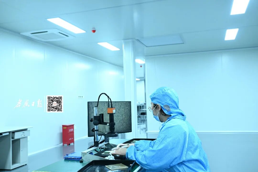 位于孝感高新区的飞恩微电子有限公司生产车间,技术人员在对生产的MEMS传感器配件进行检测。 全媒体记者李文勇 摄