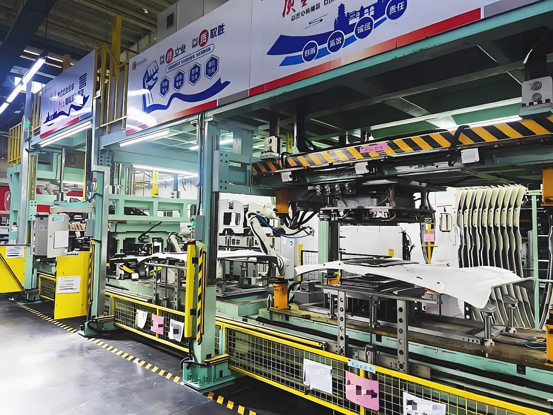 在汽车零部件领域,湖北吉兴通过自主创新,攻克了汽车内饰行业“成型两个流”的难题。其自主打造的AHM生产线,引入机器人视觉系统与线性翻转机构两大装置,实现抓取、转运的全自动精准作业,并能高效完成翻转对位等关键工序,大幅减少人工干预,显著提升了生产效率和产品质量稳定性。