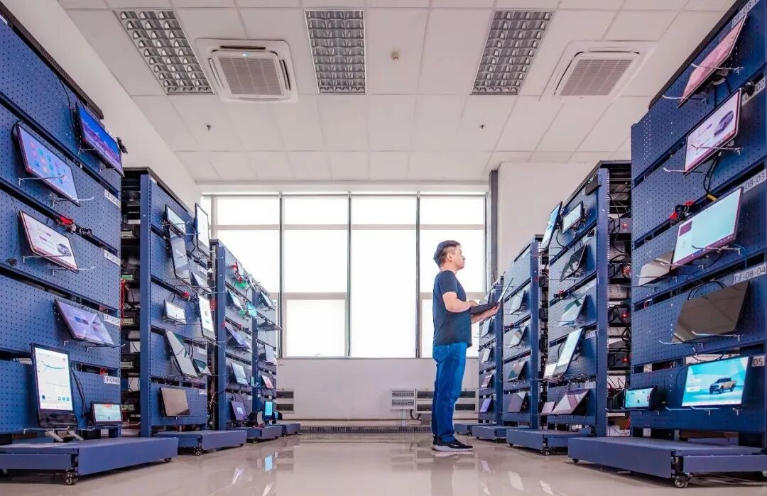 ▲东风汽车研发总院工程师正在自动化测试实验室进行测试。