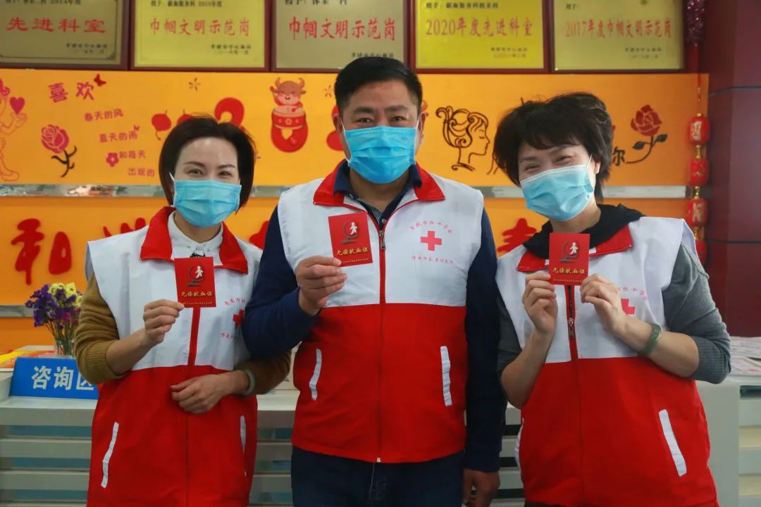▲孝感市中心血站的工作人员和段永强成了熟人。(两侧为工作人员)