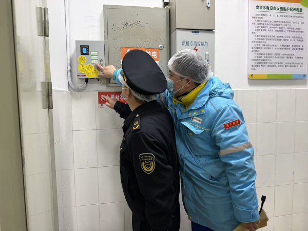 检查现场,由综合执法队员与昆仑燃气专业安检人员组成的联合检查组,手持可燃气体检测仪等专业设备,深入学校食堂后厨,重点对燃气管道、阀门、减压阀及灶具连接管等核心设施进行“地毯式”排查。检查组同步核查了用气区域的通风条件、燃气器具使用年限及消防设施配备情况,并仔细查阅了学校的燃气使用台账与日常巡查记录。针对检查中发现的细节问题,检查组现场提出整改意见,督促校方完善设备维护记录,确保燃气使用全流程可追溯、可监管。